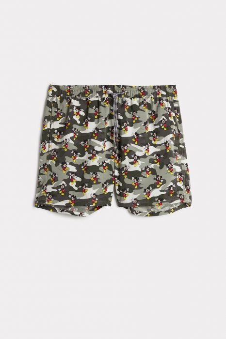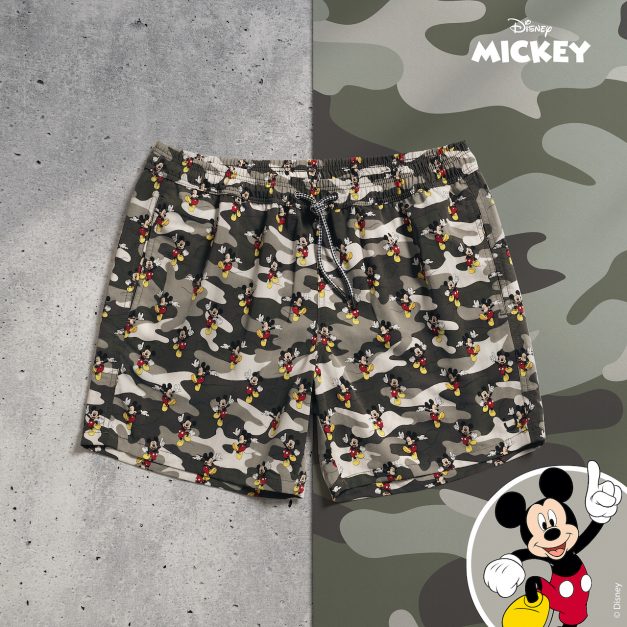 Os desenhos animados são sempre um clássico: o Rato Mickey em colaboração com a Disney é apresentado num modelo de calção de comprimento médio com um estampado camuflagem do rato mais conhecido do mundo.