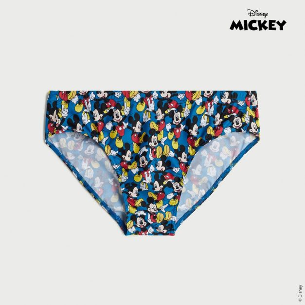 O slip com o print do Rato Mickey completa a coleção cápsula de swimwear, desenhada para quem procura liberdade dos movimentos sem restrições, mesmo na praia e, um bronzeado perfeito.