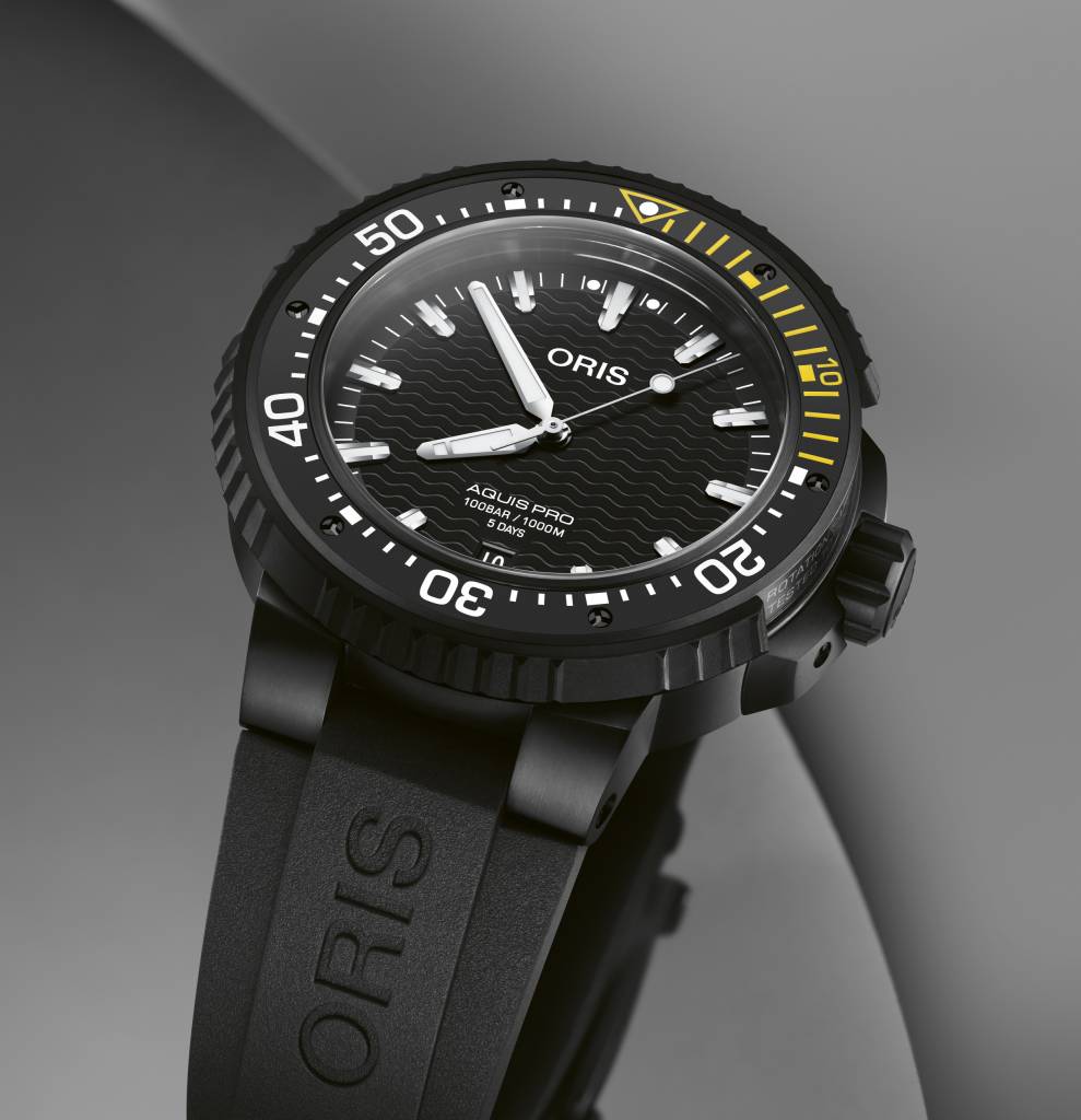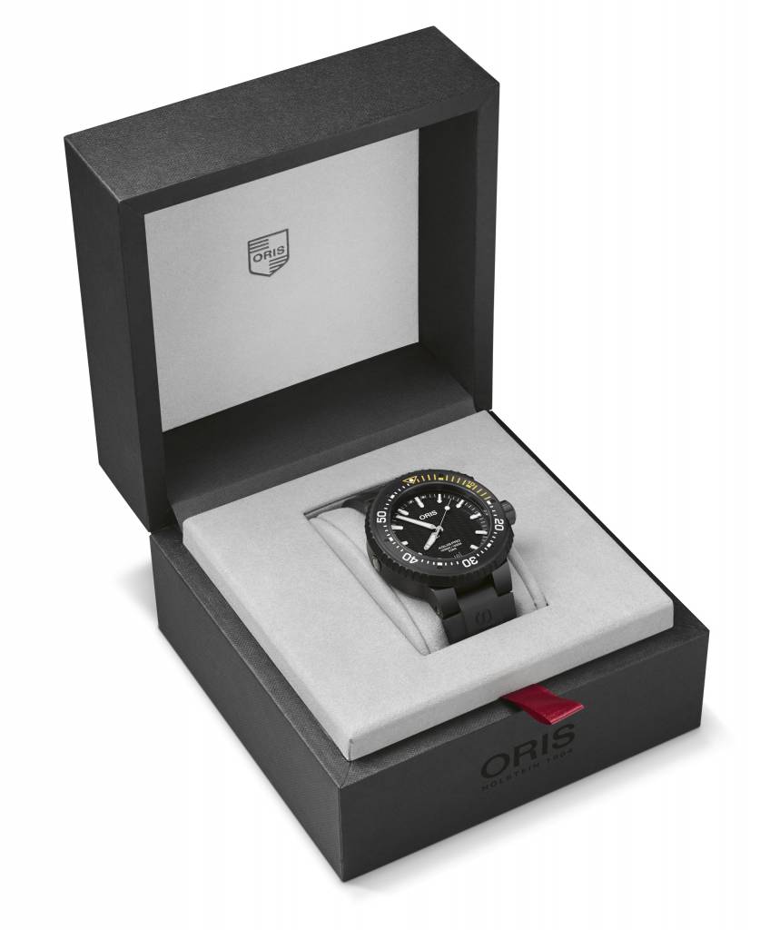 Entre as suas funcionalidades especiais está o Rotation Safety System (RSS) patenteado pela ORIS. Este dispositivo exclusivo da marca, muito requisitado pela comunidade de mergulho profissional, possibilita que o utilizador ajuste e tranque a luneta rotativa unidirecional, permitindo aferir com exatidão absoluta o tempo restante de mergulho.