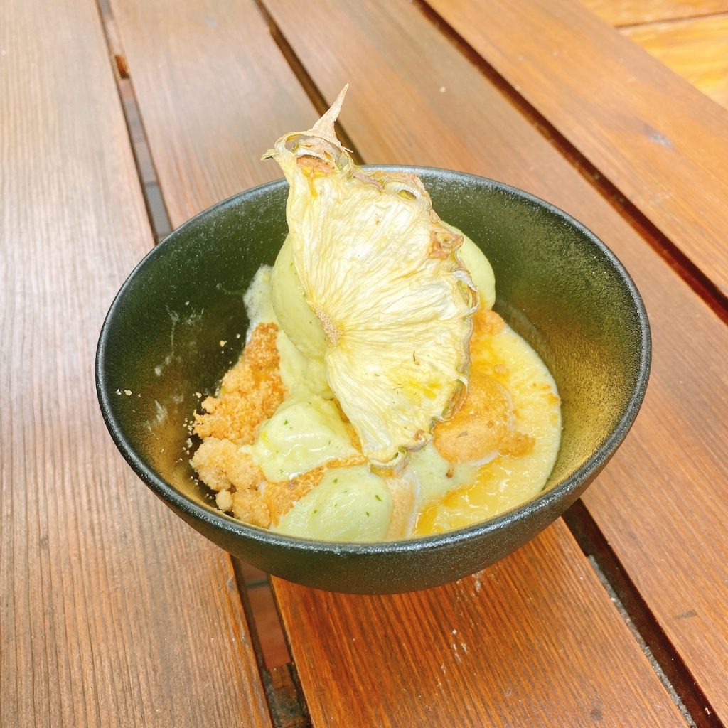brulee de yuzu com gelado de ananás dos Açores