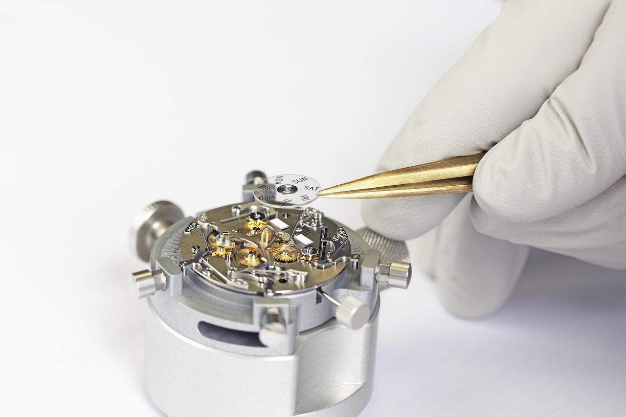 O design openface realça a natureza técnica do relógio Traditionnelle calendário completo. Esta complicação, também conhecida por calendário triplo, indica a data, o dia e o mês, complementados nestes modelos por uma fase lunar.