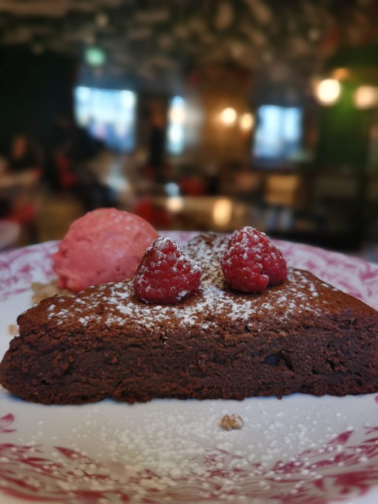 Neste ambiente de profusão cromática e acolhedor, a cozinha do Chef Nuno Bandeira de Lima, encaixa-se no seu melhor. Acompanhada por uma carta de Cocktails muito especial. da mão do Chef Barman Diogo Pereira Gomes. O menu é variado, pizzas, hambúrgueres, entradas várias e sobremesas deliciosas. Temos a destacar e recomendar como entradas. o cheviche de peixe branco com romã, malaguetas, coentros e cebola roxa. E de babar, Veggie Pakoras, fritos de vegetais super-deliciosas com maionese a acompanhar. No prato principal temos de ser honestos, o polvo grelhado estava divinal com húmus e couve PaK Choi grelhada como “companhia” de prato. A sobremesa a não perder é Bolo e chocolate Húmido.