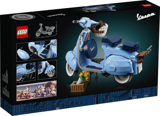 O novo set LEGO homenageia a Vespa original com a sua cor azul-pálida, uma das primeiras cores em que este ícone italiano foi feito. Os fãs podem ainda adicionar uma matrícula italiana clássica dos anos 60 e o logótipo da Vespa.