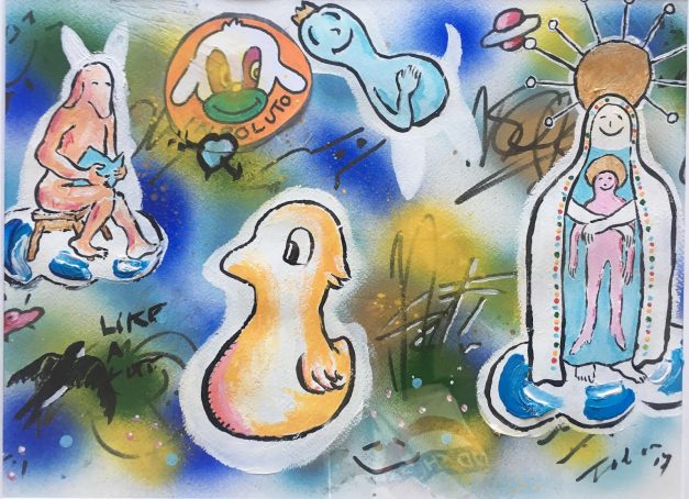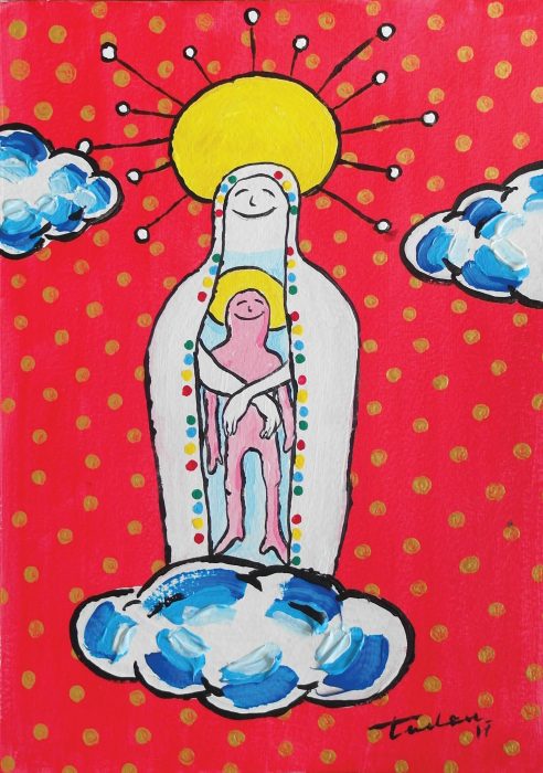 Ricardo “Tadeu” Barros já expôs a sua saga duma ”Nossa Senhora Que Ri” um pouco por todo o país – Évora, Alcochete, Cascais, Porto… Agora, em tempo de centenário das aparições de Fátima, APARIÇÃO marca a presença duma Nossa Senhora bem disposta, feliz, surpreendente,  num dos mais irreverentes bairros de Lisboa, o Bairro Alto… Até 3 de Junho!