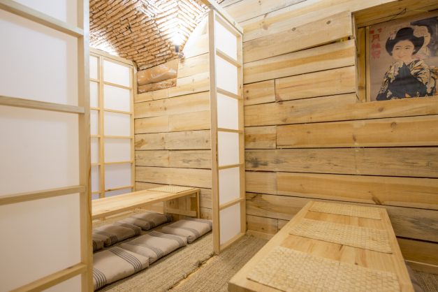 Um verdadeiro segredo, uma taberna japonesa em Lisboa. Como os melhores segredos, o Izakaya Tokkuri fica numa travessa, a meio da escadaria, escondido entre a vizinhança. A lanterna vermelha (akachochin) pendurada à porta indica que esta é uma taberna japonesa. Não espere um local espaçoso de design moderno, o Izakaya Tokkuri quer recriar o ambiente genuíno, logo, quer-se apertado e barulhento, como são todas as tabernas, com um balcão corrido onde desfilam os pratos e três salas privadas com almofadas e mesas baixas para se sentar como manda a tradição. As duas mesas na esplanada tiram partido do clima ameno de Lisboa.